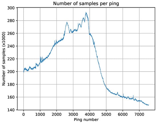 Number of samples per ping in a test file from a Kongsberg EM2040 echosounder.