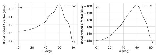 Uncalibrated X–factor for VV (a) and VH (b) polarizations as a function of the incidence angle.