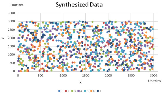 As shown in Figure 14, in the experiment on the synthetic data set, the data set is seven sets generated by random numbers, and the total number of instances is 1000.