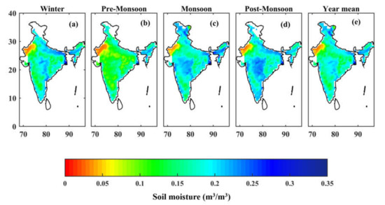 - Kishore, P.; Velicogna, I.; Geruo, A.; Mohajerani, Y.; Ciracì, E.; Charakola, S.; Basha, G.; Rao, S.V.B. Soil Moisture Variability in India: Relationship of Land Surface–Atmosphere Fields Using Maximum Covariance Analysis. Remote Sens. 2019, 11, 335. [Google Scholar] [CrossRef] [Green Version]