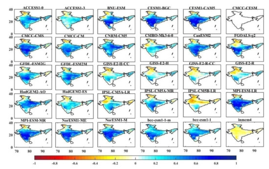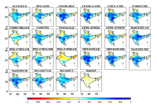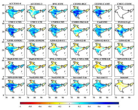 3.4.1. Spatial Correlation Analysis between CMIP5 and AMSR-E