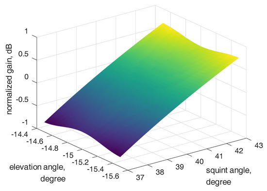 where is a linear coefficient that depends on the elevation angle, which summarizes the linear variations in EAP and slant range with the squint angle. Using Equation (16), a convenient expression of signal energy can be further deduced from Equation (15)