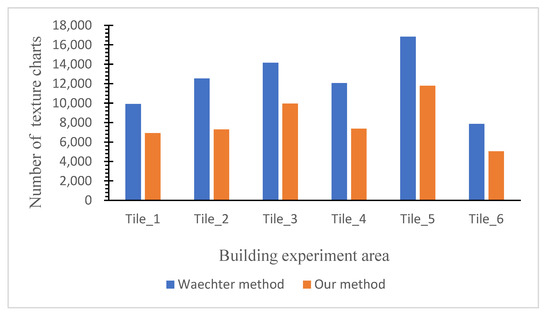 The statistics for the number of texture charts for both methods in the building area are shown in Table 3, and the corresponding bar graph is presented in Figure 18.