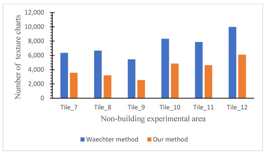 The statistics of the number of texture charts for both methods in the nonbuilding area are shown in Table 4, and the corresponding bar graph is presented in Figure 19.