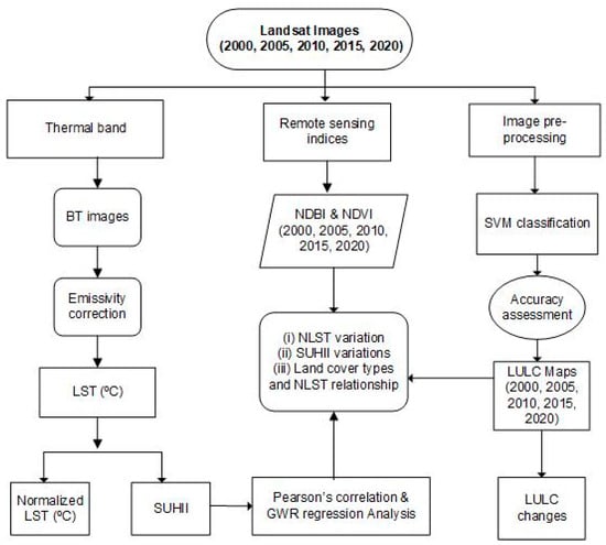 Baqa, M.F.; Lu, L.; Chen, F.; Nawaz-ul-Huda, S.; Pan, L.; Tariq, A.; Qureshi, S.; Li, B.; Li, Q. Characterizing Spatiotemporal Variations in the Urban Thermal Environment Related to Land Cover Changes in Karachi, Pakistan, from 2000 to 2020. Remote Sens. 2022, 14, 2164. https://doi.org/10.3390/rs14092164
