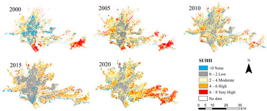 | SUHI Zone | 2000 | 2005 | 2010 | 2015 | 2020 |
