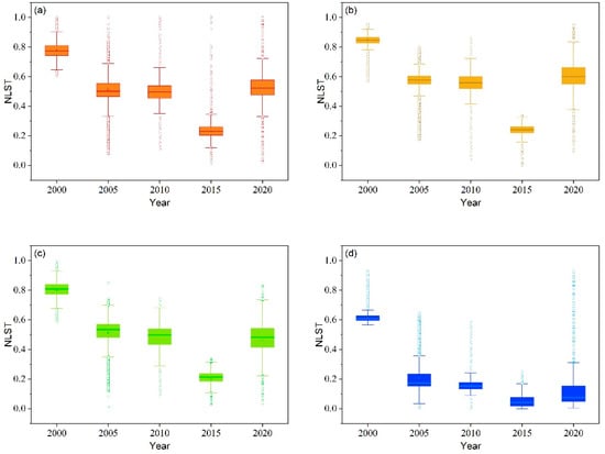 4.3. Relationship between Variations of LST and Land Cover Changes
