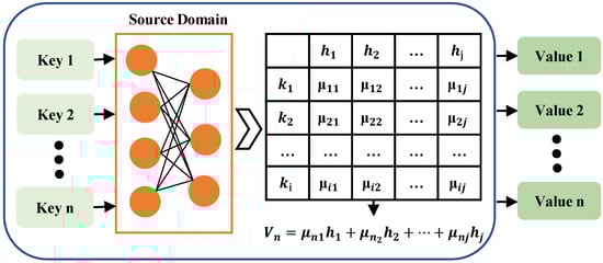 where represents the length of the source domain, represents the formula of AM, is a calculation that can obtain the similarity or correlation between the query value and each key value, and represent the i-th key value pairs, Q represents the query value in the target. Conceptually, attention is often understood as selectively sifting through a small amount of important information from a large amount of information and focusing on it, ignoring most unimportant information. By calculating the weight coefficient to achieve the purpose of focusing, the greater the weight, the more focused on its corresponding values. Namely, the weight represents the importance of information, and the value is a measure of the amount of information.