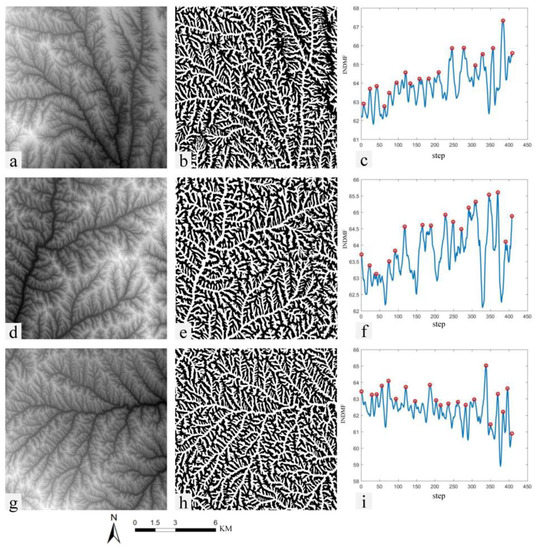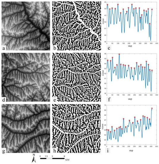 The result of Jiang’s experiment reveals that the INDMF formula has better anti-distortion and anti-noise ability than the original DMF and SDMF [49]. Given the complexity of the realistic geomorphic form, DEM data usually have much inevitable noise and geometric distortions. Therefore, the INDMF is suitable for the DEM data involved in this paper (the conclusion is obtained from the effectiveness experiment below). The INDMF can adjust the peaks and valleys of the periodic histogram to a unified scale, which is conducive to the periodic extraction of the gullies and valleys of the loess landform and the spatial positioning of the texture elements and optimise the stability of peak and valley extraction.