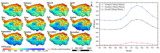 Spatial distributions of intra-annual terrestrial water storage over the Tibetan Plateau.