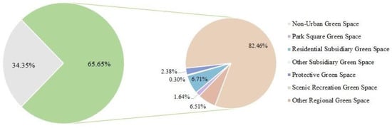 Based on the location relationship, UGS in the parcel without POI was screened and classified as other subsidiary green space or other regional green space. Similarly, with the division method of park square green space and scenic recreation green space, other subsidiary green space or other regional green space was divided according to whether it was within the built-up area or not.