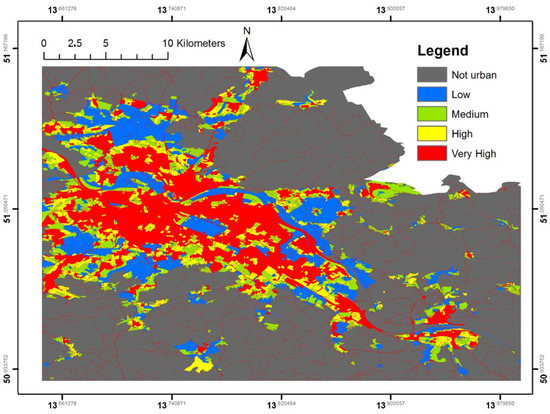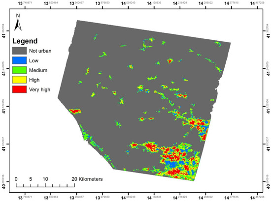 According to [39], an urban area is a place “that incorporates elements of population density, social, and economic organization, and the transformation of the natural environment into a built environment”. Philosophically, this definition is correct, but, for the purposes of remote sensing, we can recognize only a keyword, i.e., the “built environment”, which, at the boundary of a city, constitutes a continuum with the rural area. In order to extract a border between the urban environment and the rural one, a dichotomy between these two features has to be created, appropriately modelling the existing urban–rural gradient [39].
