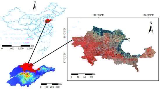 With the advance of remote sensing technology and machine learning, multitudes of studies on the extraction of the ISA have been conducted using remotely sensed data. As early as 2003, Murray et al. estimated the spatial distribution of the ISA based on Landsat images using the VIS model []. Subsequently, Lu et al. explored the extraction of the ISA with a multi-resolution remote sensing image in 2014 [], and from then on, multisource images began to be extensively applied to ISA mapping. Piyoosh et al. developed a novel urban index called NRUI for identifying urban areas, and their experimental result revealed that NRUI was able to effectively discriminate urban area from soil []. In recent years, Shrestha Binita et al. combined Sentinel-1/2 data to yield ISA spatial distribution data [], which provided new perspective on ISA mapping through synergic use of optical and radar data. Due to its powerful data fitting capabilities, machine learning is extensively adopted for land use/land cover mapping in remote sensing fields. For example, Liu et al. estimated the fraction of the ISA using random forest regression in the Nansi Lake region []. Liu et al. presented a method for extracting ISA information based on combined kernel support vector regression []. Zhang et al. developed an ISA mapping method through combining multi-temporal Landsat data with a decision tree algorithm over the Pearl River Delta area []. Additionally, a few studies have been performed for the investigation of ISA in the Yellow River Delta through reviews. Liu et al. obtained the ISA distribution data in Dongying City in 2019 by integrating Sentinel-1/2 remotely sensed data with a random forest approach, which exhibited the potential of multi-source multi-modal data to produce ISA information []. The research on the impact of the expansion of the ISA on the ecological environment has been conducted with Bohai Bay Rim (covering Dongying City and Binzhou City) as the study area []. Currently, the major approach to extract the ISA focused on the combination of optical remotely sensed data and spectral indices generated with a calculation among different bands [,].