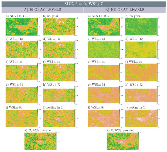 - When the inner and the outer scale are relatively similar in size, then approximates and approximates . This happens when double moving windows of similar size are employed. In this case, the depicted diverse structures are ‘produced’ by approximately equal amounts of information from the prior and from the likelihood. On the other hand, prior and likelihood will not differ that much, because inner and outer scale are of similar size and also because they are centered on the same pixel. Therefore, we expected to see similar features compared to the uni-scale approach and we expected the smoothing of scale-specific and of multi-scale features to be similar.