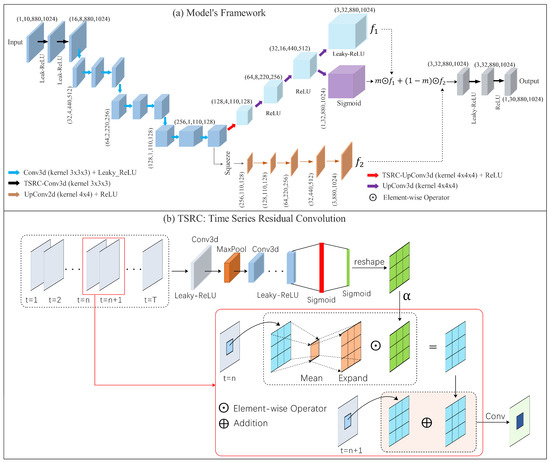 (a) The framework of the model; (b) the overview of the ‘time series residual convolution (TSRC)’ module.