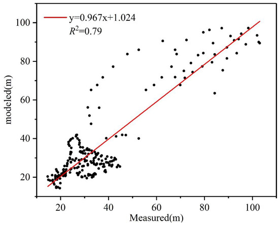 We likewise compared the field observations of Qingbingtan Glacier No. 72 with the estimated ice thickness results in this paper with the working assumption that the thickness in the observation period is similar to the current glacier thickness. We selected the glacier median GPR glacier thickness data to compare the calculated and measured glacier thickness values. They proved to be comparable. A comparison of the glacier thicknesses from the 2008 field observations and the 2013 remote sensing inversions returned correlation coefficients (R2 > 0.85) (Figure 7).