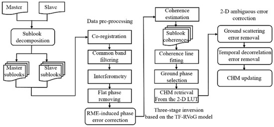 To address these problems, a modified three-stage method that is suitable for the TF-RVoG model is proposed for the CHM inversion, and the detailed steps are as follows.