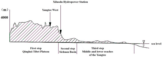 As shown in Figure 1, the reservoir area is located on the southwestern margin of the Yangtze platform, which is the transitional zone between the Yunnan–Guizhou Plateau and the Sichuan Basin. The terrain is generally high in the west and low in the east, belonging to the strong erosion of the high-mountain landform [28]. The Xiluodu Hydropower Station is located at the junction of the first and second steps of China. Rapid changes in the terrain may easily cause geological disasters. Moreover, with the completion of the hydropower station, significant fluctuations in water levels will significantly affect the fragile geological environment.