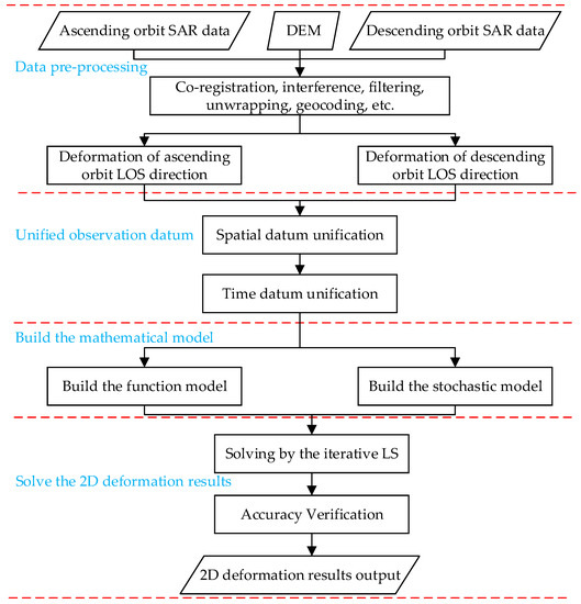The specific geometry for decomposing LOS deformation into two-dimensional displacements is shown in Figure 4.