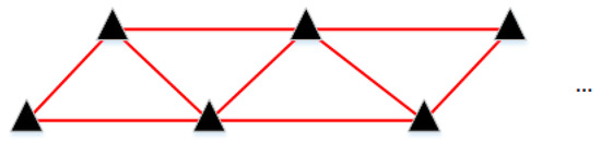Two-connection network mode. The black triangles represent the SAR images in chronological order from left to right, and the red lines represent different interference pairs.