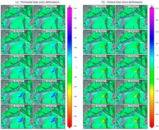 (a) Horizontal time-series deformation; (b) vertical time-series deformation.