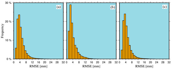 Root mean square error chart. (a) Total mean square error; (b) deformation significant regional mean square error; (c) deformation non-significant area mean square error.