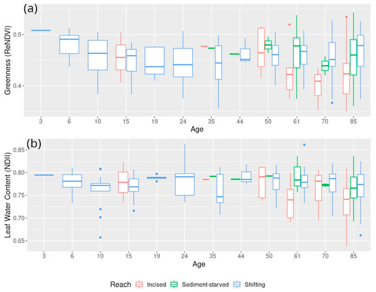In riparian environments, hyperspectral imagery with Landsat data has been used to provide in situ data for investigating the responses of pioneer species (such as poplars and willows) to groundwater decline following a drought event [40] and to investigate changes in competitor/stress tolerator/ruderal (CSR) strategies in hydrologically-altered reaches [39]. These examples show the potential of hyperspectral imagery for investigating hydrogeomorphic feedback in riparian communities.