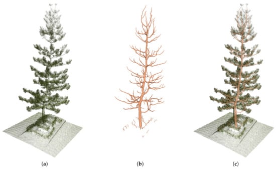 - Aiteanu, F.; Klein, R. Hybrid tree reconstruction from inhomogeneous point clouds. Vis. Comput. 2014, 30, 763–771. [Google Scholar] [CrossRef]