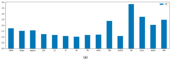 Variance Inflation Factor (VIF) of all variables. (a) Karun Basin, and (b) Gorganrud Basin.