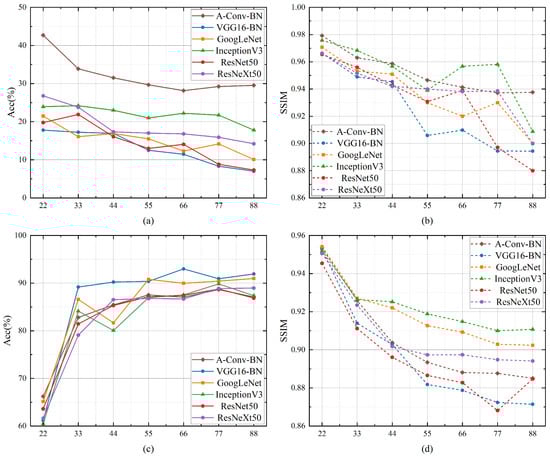 where is the adversarial example of , , and , are the mean and standard deviation of the corresponding image, is the covariance, and , are the constants used to keep the metric stable. Equation (27) calculates the mean of the SSIM value between all the samples in the dataset and the corresponding adversarial examples, which ranges from to 1. The higher the SSIM, the more imperceptible the UAPs, and the better the attack’s stealthiness is.