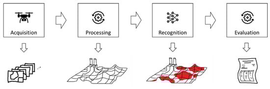 Modern Sensor Technologies like LiDAR, data processing techniques like Structure from Motion (SfM), and flexible sensor platforms like unmanned aerial vehicles (UAV) offer more efficient ways to acquire detailed data about both the geometry and the visual appearance of the scanned surfaces (compare, e.g., [,]).