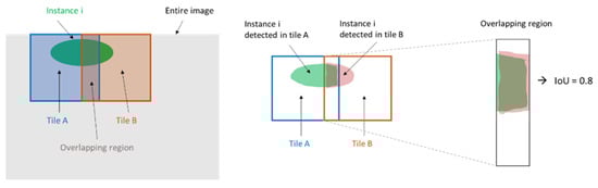 One of the main reasons for false negatives was falsely merging two or more instances together (see Figure 24). This reason accounts for 2 out of 2 false negatives on site B and 5 out of 9 false positives on site C. The merged prediction itself was additionally counted as false positive. The remaining false positives, including all 4 from test-site A, are either due to a confidence value on the object level that was below the threshold or a predicted region on the pixel level that had an IoU score below 0.5 with the GT.