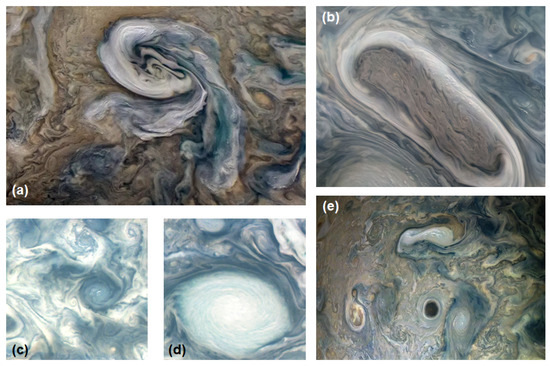 - Mac Low, M.M.; Ingersoll, A.P. Merging of vortices in the atmosphere of Jupiter: An analysis of Voyager images. Icarus 1986, 65, 353–369. [Google Scholar] [CrossRef]