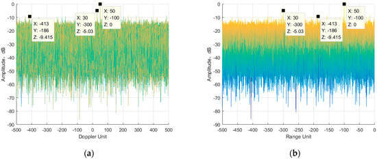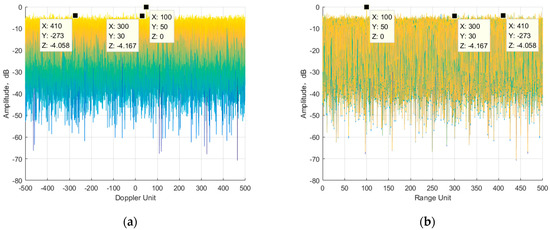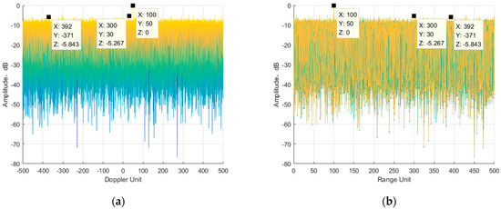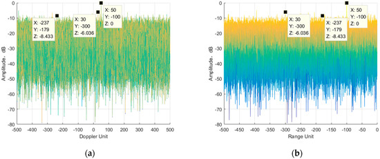 Integration results with the proposed method: ; (a) Doppler dimension; (b) Range dimension.