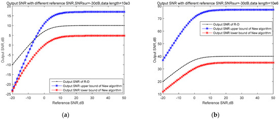 When considering the SNR of the reference channel, from Equation (25), the output SNR of R-D algorithm is as follows: