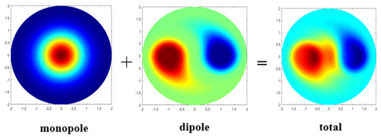 Siegel et al. pointed out that chlorophyll’s monopole structure reflects mesoscale eddies’ role in addition to eddy stirring, and the dipole structure reflects the role of eddy stirring in a mesoscale eddy [4]. Gaube et al. simulated the monopole and dipole structures of chlorophyll anomalies and combined them. The results were similar to the anticyclonic eddy observed in the Leeuwin Current [7]. Frenger et al. separated unipolar SST anomalies by radially averaging the total SST anomalies relative to the eddy’s centroid [23]. A method is used to separate monopoles and dipoles in mesoscale eddies; subtract the remaining term of the monopole structure from the synthetic mean data of the mesoscale eddies as the dipole structure of the mesoscale eddies. The specific formula is