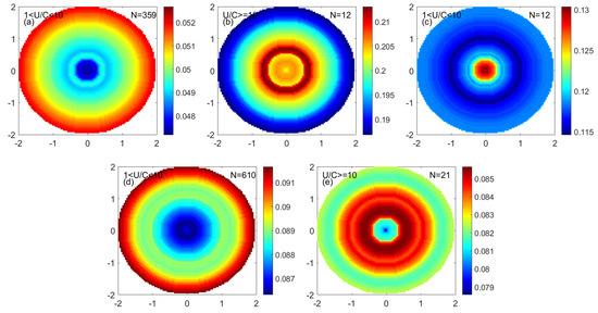 Figure 6 shows that in cyclonic eddy monopole decomposition, the phytoplankton of each size in the center of the eddy increased, the increase in phytoplankton gradually decreased with increasing distance from the center, and there was a slight decrease in phytoplankton at the periphery of the eddy. Comparing the low nonlinear cyclonic eddy and the high nonlinear cyclonic eddy in the monopole image, the increase in phytoplankton in the center of the low nonlinear cyclonic eddy is less than the increase in phytoplankton in the center of the high nonlinear cyclonic eddy. The reduction in phytoplankton at the periphery in a low nonlinear cyclonic eddy is less than that of phytoplankton at the periphery in a high nonlinear cyclonic eddy. The reduction in phytoplankton at the periphery of the cyclonic eddy was much smaller than the increase in the eddy’s center. Comparing the variations in phytoplankton of different sizes in the cyclonic eddy, the increase in phytoplankton in the center of the cyclonic eddy was in the order of nanophytoplankton > microplankton > picophytoplankton. The reduction in phytoplankton of each size at the periphery of the eddy was similar and much smaller than the increase in the eddy’s center.