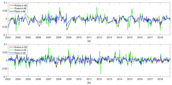 Figure 16 shows the time series of phytoplankton changes of different particle sizes in the center of the cyclonic and anticyclonic eddies. For different sizes of phytoplankton, the phytoplankton in the center of the cyclonic eddies usually increased, and the phytoplankton in the center of the anticyclonic eddy usually decreased. The changing trends of phytoplankton of different sizes were similar. The phytoplankton change in the eddy’s center was in the order of nanophytoplankton > microplankton > picoplankton. In addition, phytoplankton increased in the eddy’s center before and after winter. For example, in early 2004, early 2008, early 2012, and early 2016, there was a transient increase in phytoplankton in the eddy’s center. The phytoplankton in the eddy’s center usually decreased before and after summer, such as in summer in 2003, summer in 2007, and summer in 2009.
