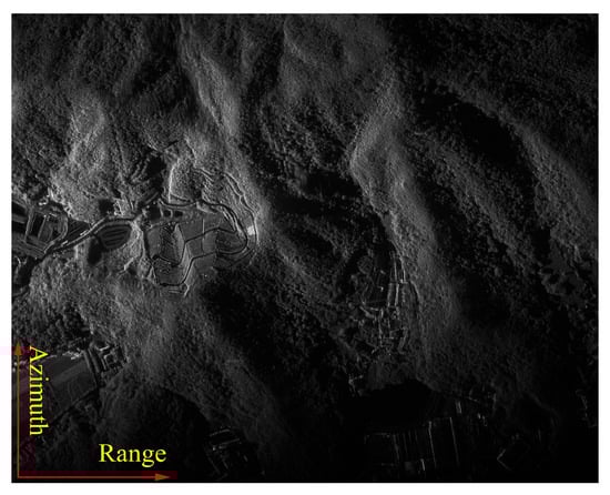 A continuation of the discussion based on the X-band airborne SAR data from AIRCAS and the focused SAR image processed using IETSA is shown in Figure 16, with a squint angle of 10° and a coherent integration angle of 10°, which further confirms the effectiveness of IETSA.