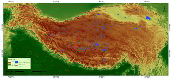Schematic diagram of the study area. The base map is from the digital elevation data produced by The Shuttle Radar Topography Mission (SRTM). The TP Lake DataSet and TP boundary are vector datasets obtained by the National Tibetan Plateau Scientific Data Center.