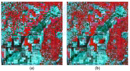 Figure 3 and Figure 4 displays the fused images created by GIV and proposed approach only, such as S2 fused with distinct VH and VV polarized images of S1 data, to allow for visual comparison of the effectiveness of the various fusion approaches under consideration. The obtained images after fusing S2 with S1 (VH and VV polarization separately) are shown using three spectral bands (G, R, and NIR; Figure 3 and Figure 4).