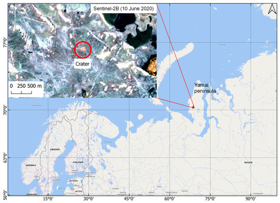 - Kizyakov, A.; Leibman, M.; Zimin, M.; Sonyushkin, A.; Dvornikov, Y.; Khomutov, A.; Dhont, D.; Cauquil, E.; Pushkarev, V.; Stanilovskaya, Y. Gas Emission Craters and Mound-Predecessors in the North of West Siberia, Similarities and Differences. Remote Sen. 2020, 12, 2182. [Google Scholar] [CrossRef]