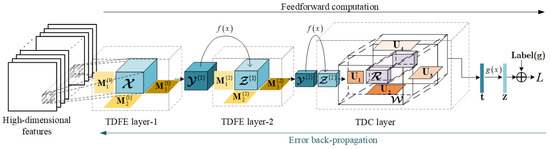 (3) FTDN architecture and learning: Based on TDFE layer and TDC layer, we propose a full tensor decomposition network (FTDN) for high-dimensional data classification. The architecture of the FTDN is shown in