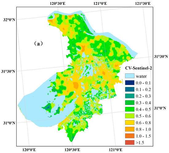 The GPP variation coefficient (CV) of Sentinel-2 (a) and MODIS (b).