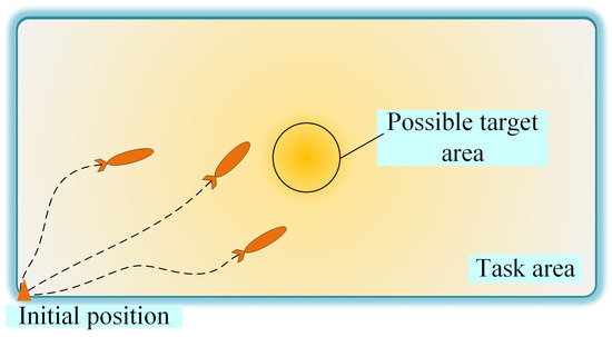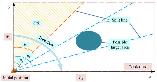 According to assumed prior target information, the probabilistic map of target presence () is given [34]. Furthermore, the possible target area Z is defined as the zones within the task area where the probability of target presence is higher than a threshold:
