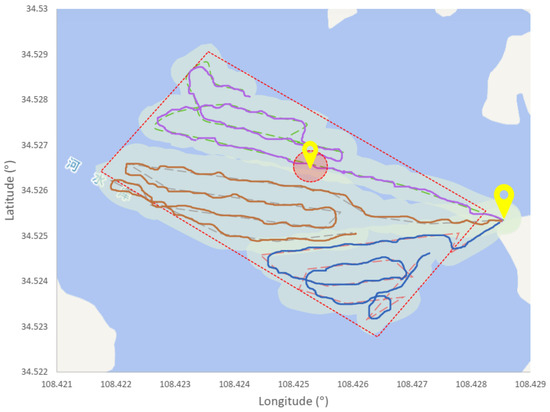 The constraints in Equation (5) are as follows: (1) the union of all sub-areas covers the original task area, and (2) the sub-areas are non-overlapping. For this step, the multi-robot coverage task for the whole task area is transformed into single AUV coverage tasks.