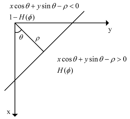 Then, Equation (10) can be solved by applying the gradient descent method. As the parameters and change with time t during the evolution of the line, the evolution equation is obtained as [31]: