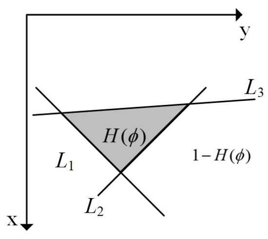 Suppose the triangular region is regarded as the intersection of three straight lines. In that case, there is another possibility for the , not the case shown in Figure 7, which can also achieve segmentation of the triangle.