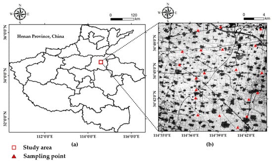 Location and Sentinel-1 images of the study area and sampling points: (a) location of the study area; (b) Sentinel-1 image of the study area and sampling points.