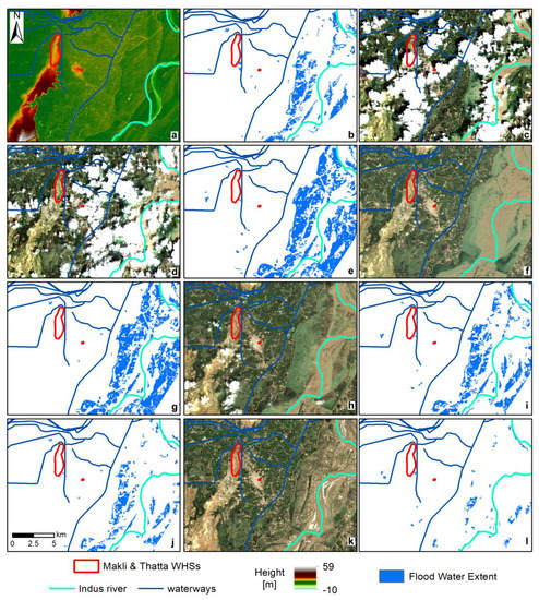 At international level, parallel efforts were conducted by the United Nations (UN) program UNOSAT, a division of the United Nations Institute for Training and Research (UNITAR), and the Copernicus Emergency Management Service (CEMS). Both the organizations exploited satellite images to document the pre-, during and post-flood situation over a large area of the country. In particular, one of the first products released by UNOSAT included a focus on Mohenjo Daro WHS [26]. Of the two CEMS activations, the one that could be of potential interest for cultural heritage assessment is rapid mapping activation EMSR629 covering the areas of Jacobabad, Larkana and Shikarpur in the Sindh region [27]. However, the extent of the mapped flooded areas does not include Mohenjo Daro WHS or other major heritage sites. On the other side, these multiple and simultaneous mapping efforts emphasize the relevance of satellite remote sensing for rapid assessment and continuous monitoring of the floods.